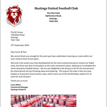 An appreciation letter regarding the Revied seating that has been carried out in the stadium.